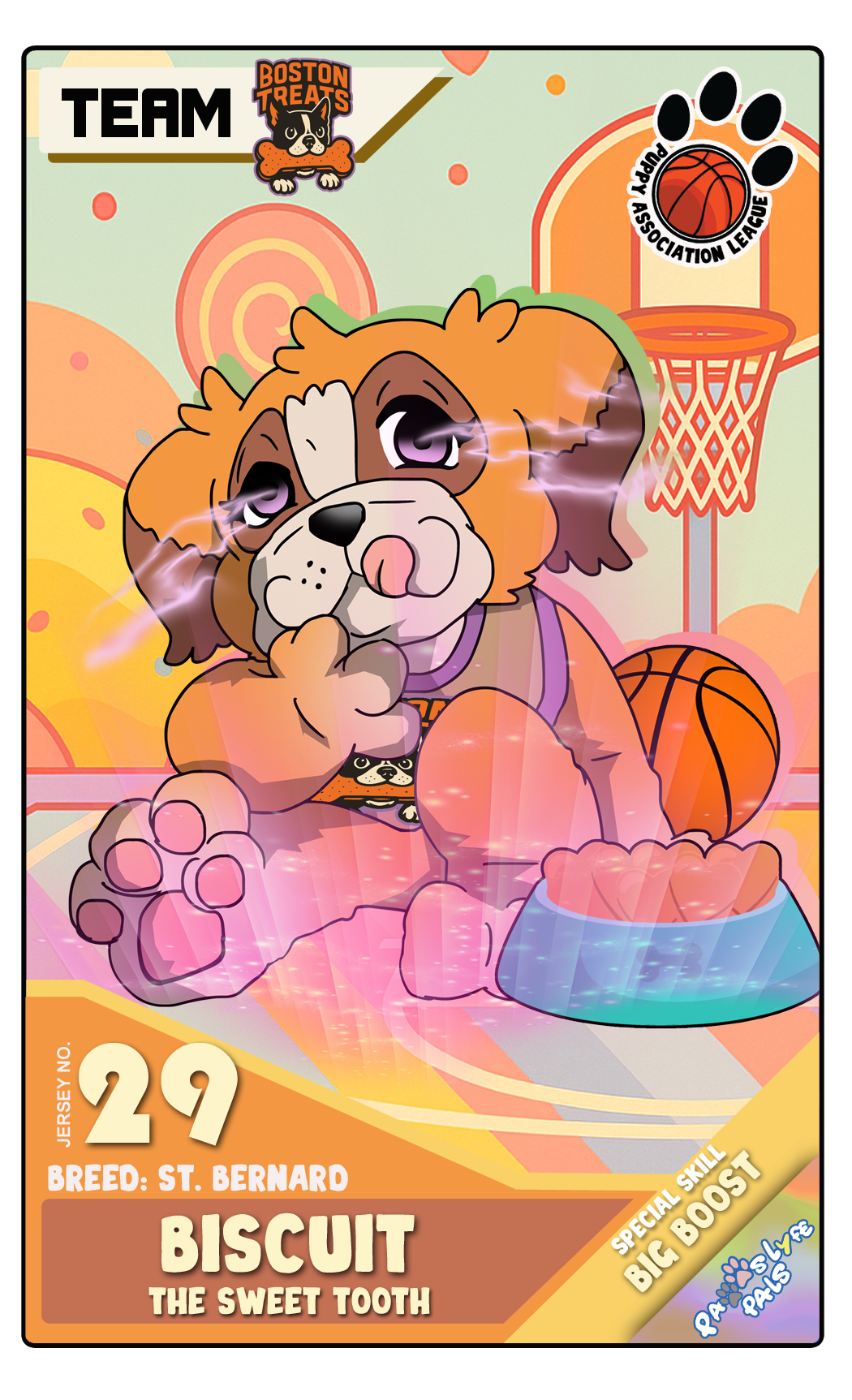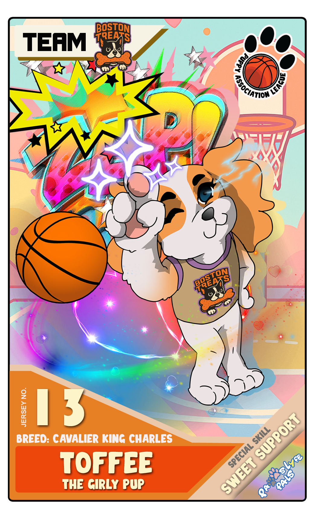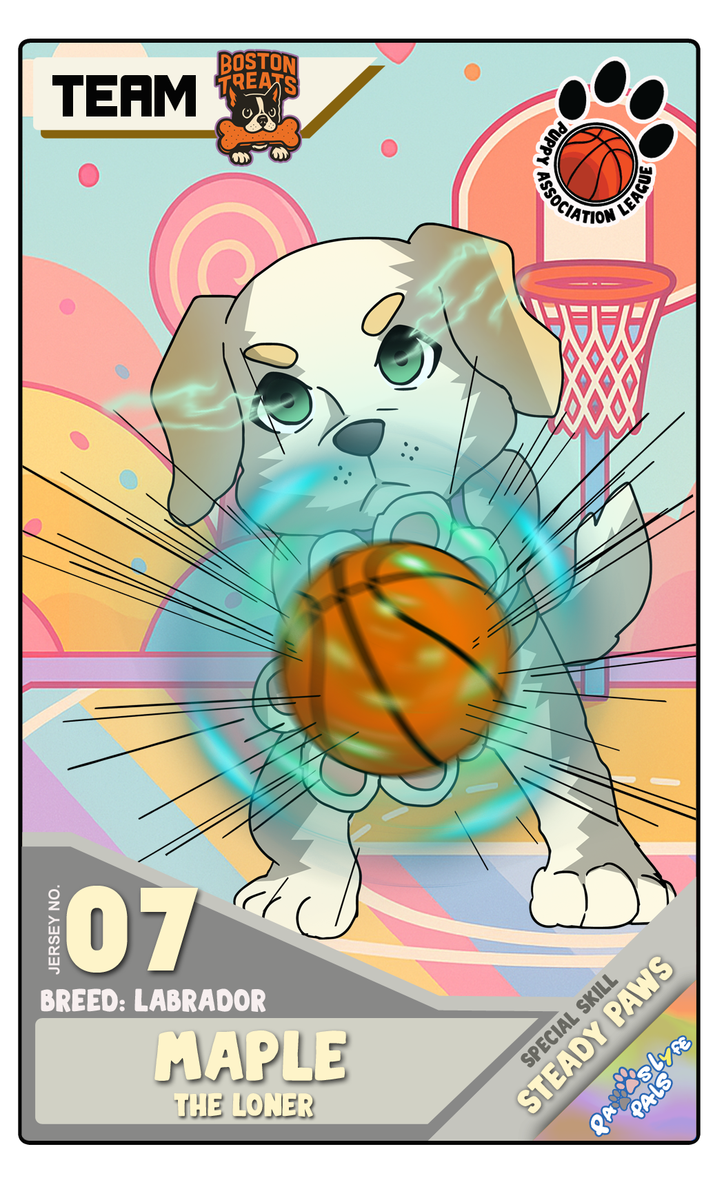 A Mini Yorkie and the captain of this all-girls team. She is well-mannered and guides the team through every hurdle they face. They respect her as their ideal leader. Hot Barks Known for their fierce loyalty and unstoppable teamwork, the Atlanta Hot Barks are the queens of the court!With sharp minds, sharper moves, and a flair for the dramatic, this all-girls dream team plays every game like it’s the championship. Whether they’re sinking threes or sharing treats, the Hot Barks bring leadership, sisterhood, and serious bark-power to every play!They don’t just chase balls, they chase greatness. ROSTER Bambam A fluffy Pomeranian. His childish attitude often intimidates or bluffs opponents into letting their guard down. Sassy A Toy Poodle who acts like a ninja. With a balance of speed and strength, she’s always the first to act. Mimi A Maltese who often acts like a queen. She’s on par with Bambam in terms of skill but considers Bambam a friendly rival while acting like the team’s big sister. Trixie A lovable Golden Retriever and kind team captain who gives everything he’s got for the sake of the team. A well-respected leader—almost everyone in the school sees him as a kind classmate. Treats Led by golden-hearted Rocky, the Boston Treats are a tight-knit team full of courage and kindness. Maple brings grit, Toffee brings glam, and Biscuit brings muscle—they may not have the flashiest moves, but their heart is unmatched. They don’t just play the game—they play for each other, always ready to fetch the win. ROSTER Rocky A Cavalier King Charles Spaniel. Carefree and fun-loving, she’s the team motivator. She loves to pose as if she’s a model or pop star. Toffee A Labrador. In contrast to Rocky, he’s a loner and resilient. He was somewhat lonely, but joining Rocky’s team gave him a sense of hope. Maple A St. Bernard who’s always hungry. She’s somewhat slow and lacks refined skills, but according to Rocky, she has the potential to be an MVP. Biscuit A Cane Corso and the team captain. He’s very strict and somewhat rude, but he believes that by doing so, he can drive the team to a championship. Bark Backs Known for their intense focus and no-nonsense attitude, the Brooklyn Bark Backs are all about grit, grind, and game-time glory.This tough-as-nails crew doesn’t play around, unless it’s full-court press. With power, precision, and just the right amount of bark, they bring discipline and dominance to every match. Whether they're breaking ankles or breaking records, the Bark Backs are here to win, no fluff, no fuss.They don’t chase after praise, they chase championships. ROSTER Shadow A Boston Terrier who imitates opponents and can copy their skills to an